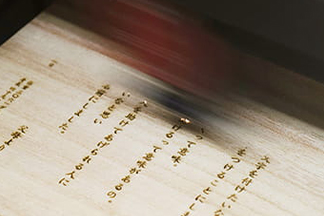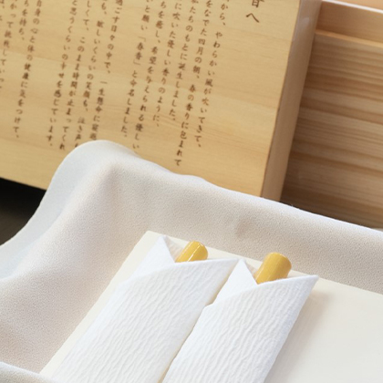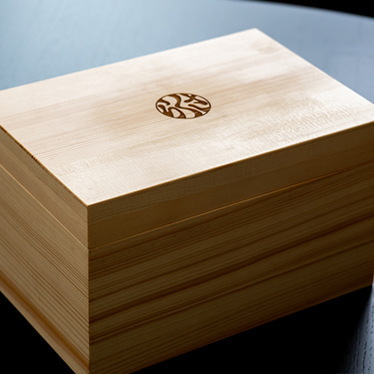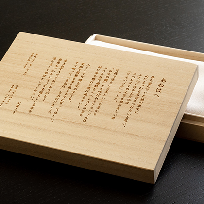 箱の表に名前の印影(こまもりのしるし)を刻印し、裏側にメッセージを刻んだ2段タイプのこまもり箱。