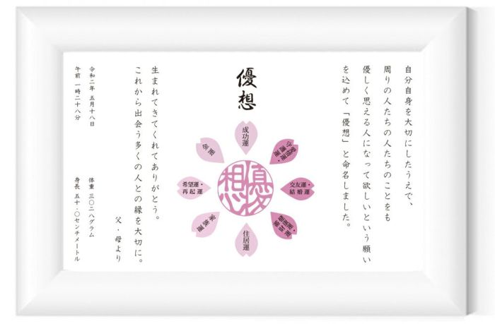 名前に願いを込める命名書は、命名したその時の想いをカタチに、その想いを未来のお子様・お孫様に贈ることができます。