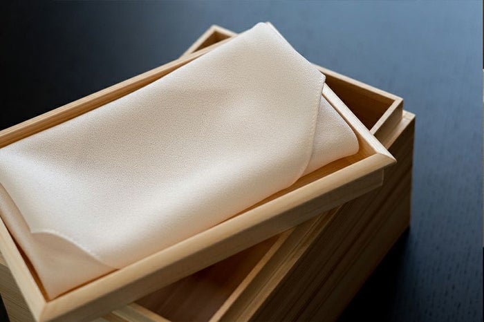 上の画像の越前和紙でお作りする「おくるみケース」に加え、携帯に便利なクロコ柄のハードケースが付属します。
