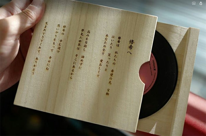 - 歌詞を刻んだ木製CDケース