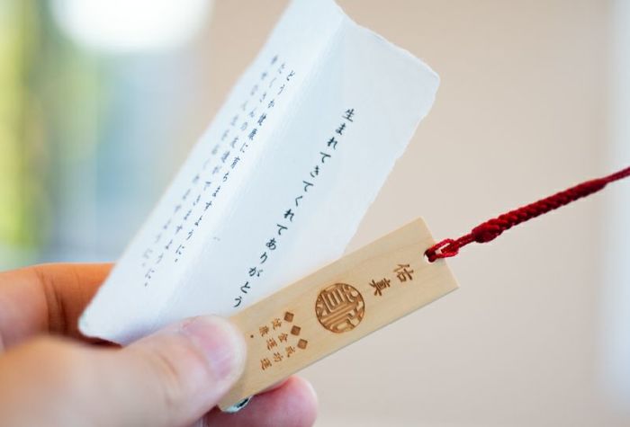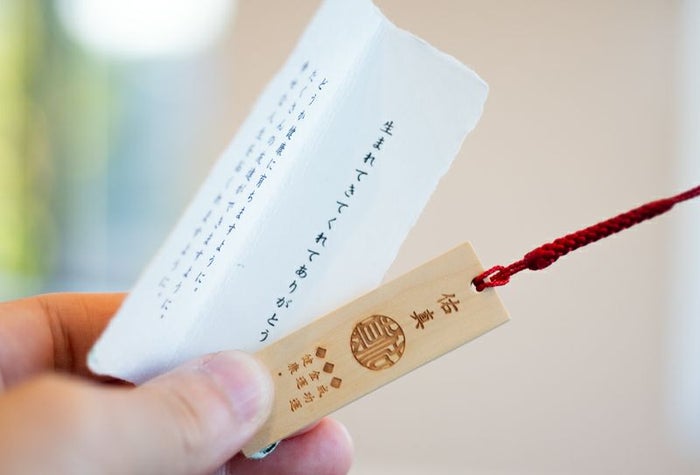 (+5,500円)で「しるし結び」の印影とメッセージを桐箱に刻印できます。