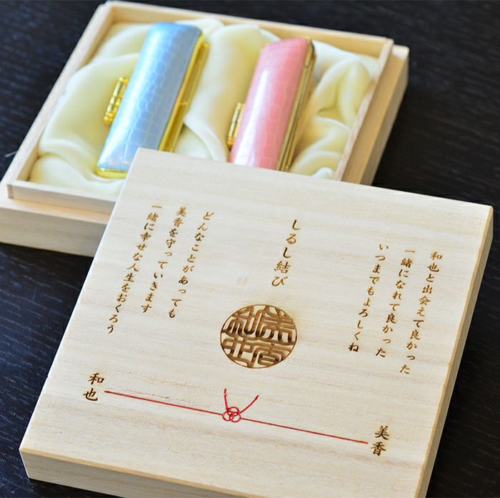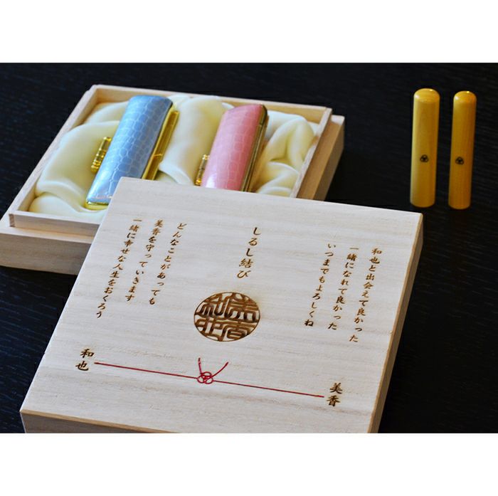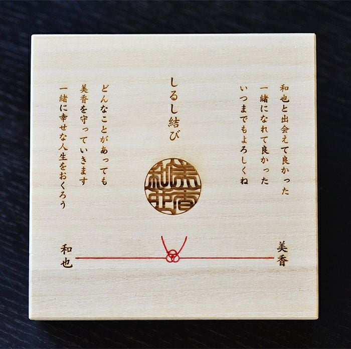 ◆しるし結び・メッセージ入り桐箱(メッセージ内容は変更できます)