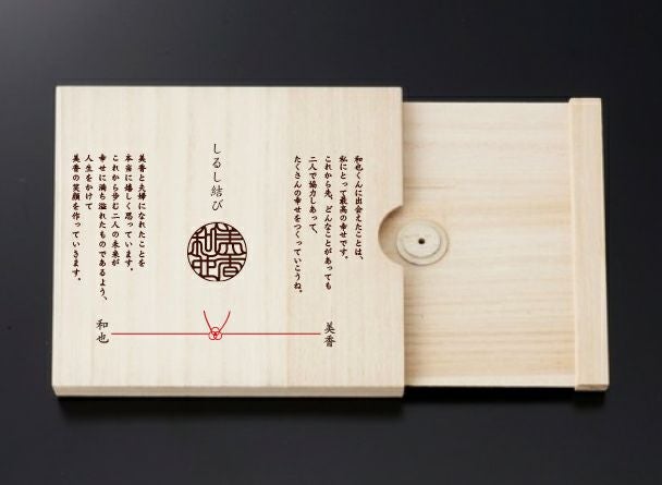 しるし結びCD/DVDケースは、結婚式当日のメモリアルムービーなど保管し、見返すたびに、二人の初心を思い出せるブライダルアイテムです。
