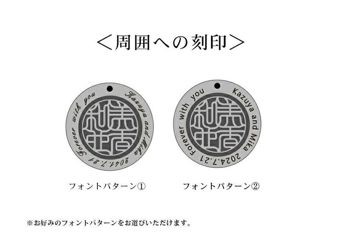 周囲にメッセージを刻印することが可能です。お好みフォントパターン①or②をお選びください。