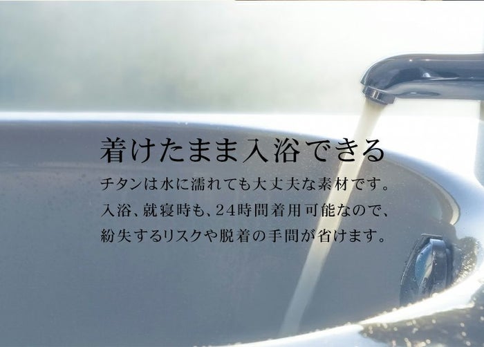 使用するチタン素材は、錆びにくくて汗にも強いという特徴加え、「金属アレルギー」の方でも使用できる優しい金属という特徴があります。