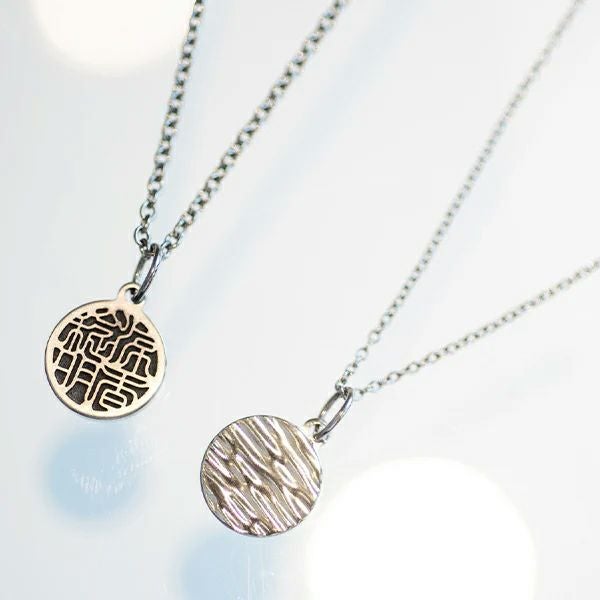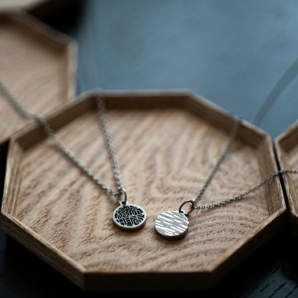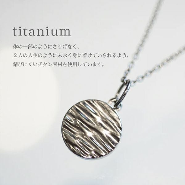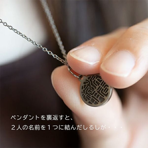 ふたりの名前を1つにした「しるし結び」の印を刻んだチタン製のペンダントは、不確かな時代に永遠を誓うふたりの心を、固く結び続けます。